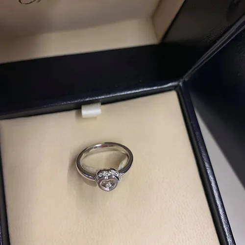 Model reference: 829008-1110. A masterpiece of Miss Happy line from Chopard, this charming ring will add a sparkling hint to your jewellery collection. The iconic piece of Happy Diamonds is made of 18K white gold and holds a heart-shaped frame embellished with a glimmering brilliant-cut diamond set. The graceful item embraces the brand’s hallmark, a mobile diamond that creates a youthful and carefree spirit. The gorgeous model will make your image tender and charming worn both alone and in combination with other jewellery pieces of the line. The sweet and trendy ring is a perfect gift for any occasion.
