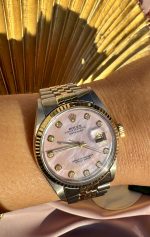 Home » Shop » Rolex Datejust 36mm Yellow Gold Fluted Pink Mop Diamond Dial Jubilee Watch