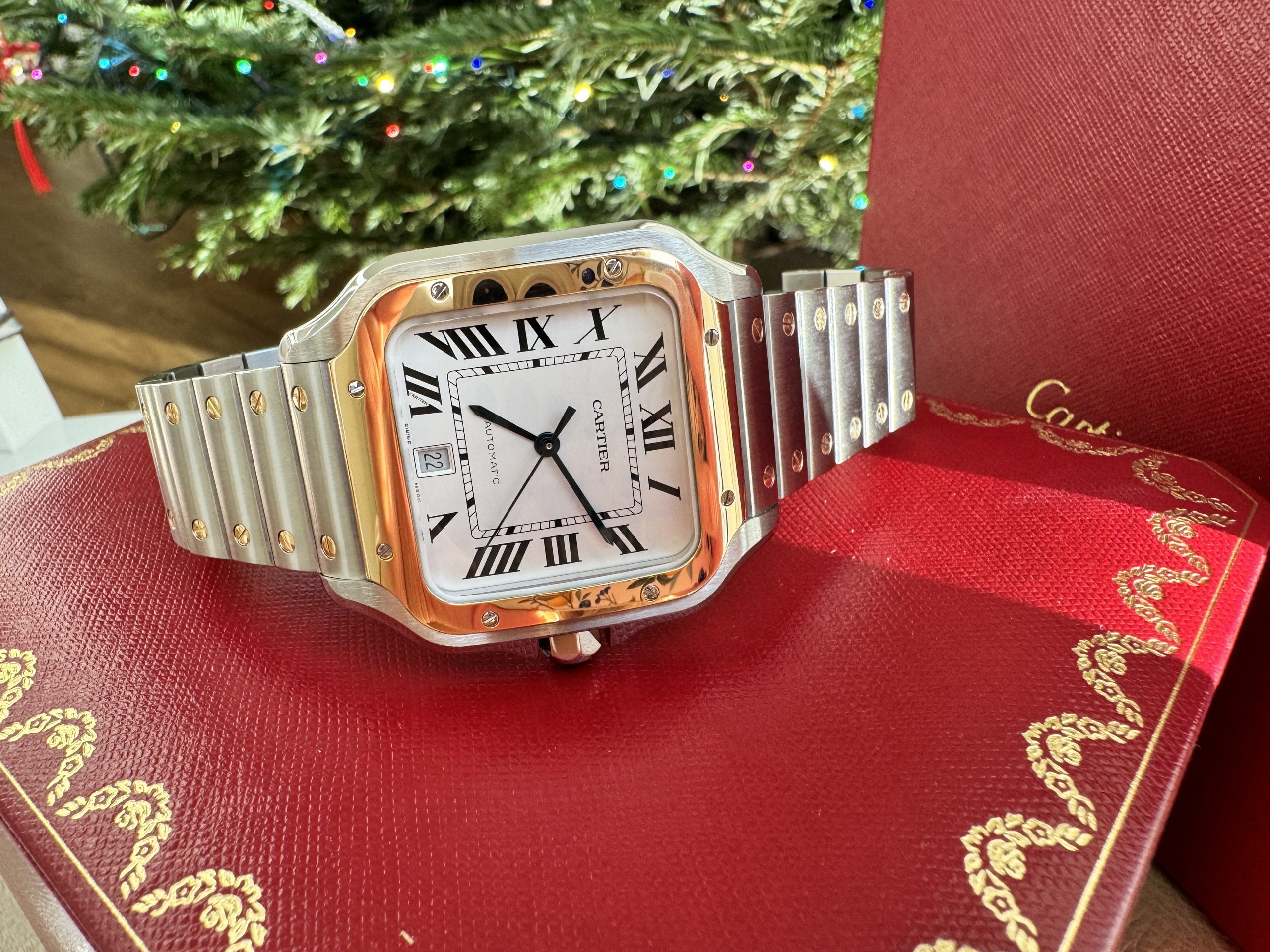 Cartier Santos Large Two-Tone Yellow Gold/Steel Silver Opaline Dial Bracelet
