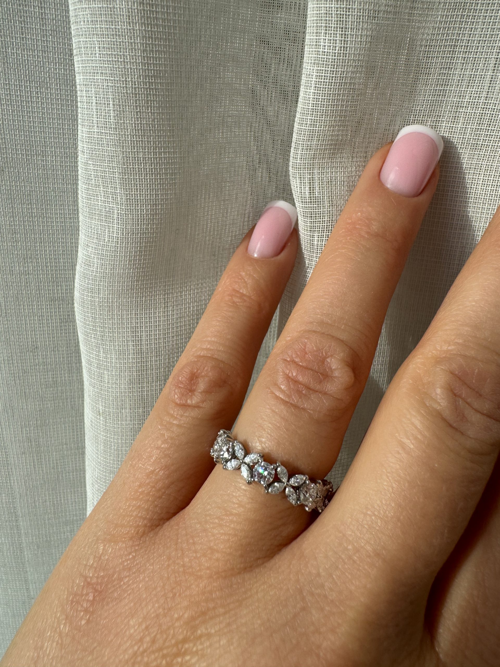 Tiffany & Co Victoria Alternating platinum Ring. Round diamonds 1.14 CT. Marquise diamonds 0.79 CT